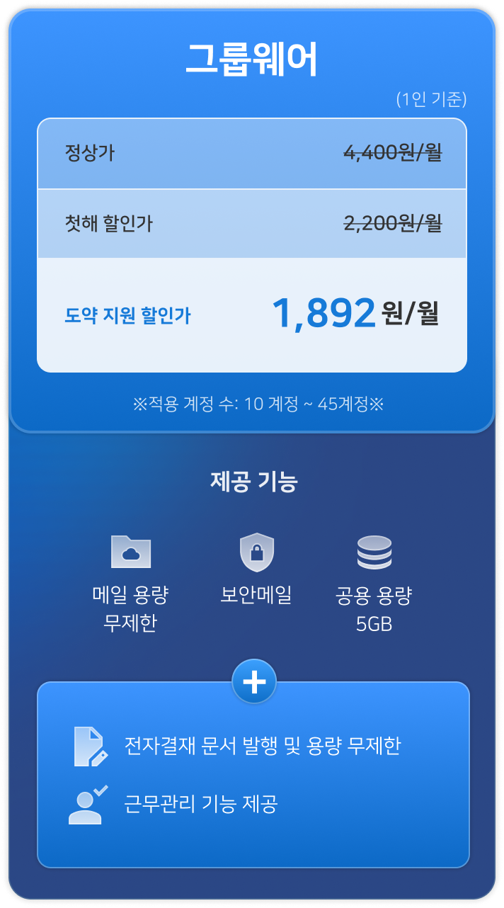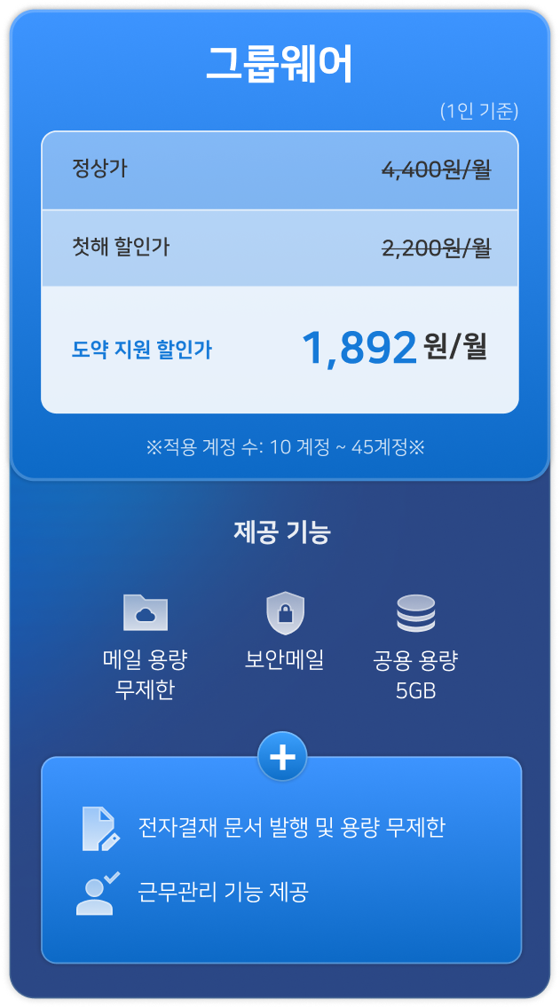 메일보다 더 낮은 비용으로 그룹웨어를 시작해 보세요.
